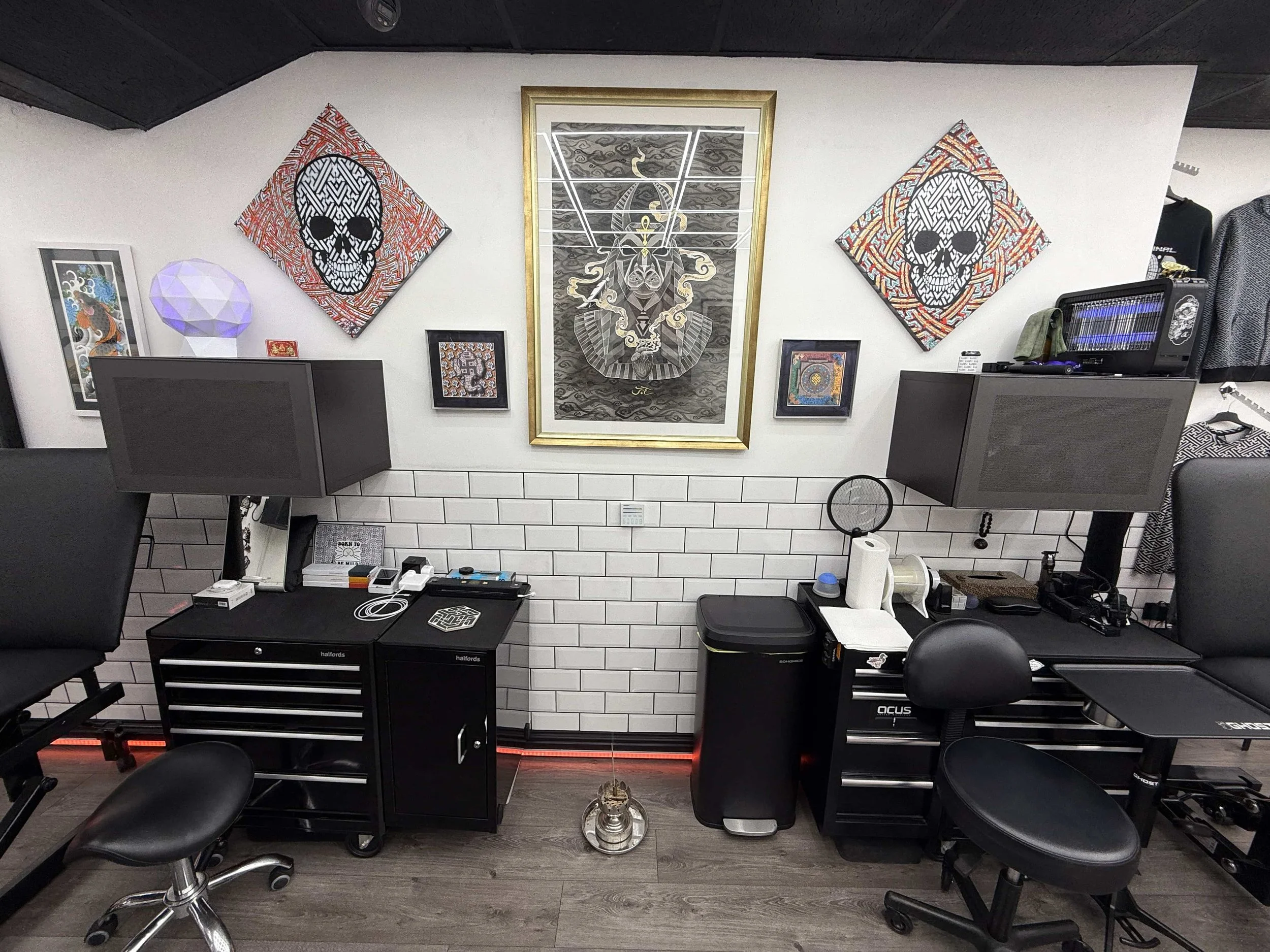 We run a completely vegan tattoo studio so please do not bring any food than contains any animal carcass or their secretions (that includes milk, cheese, honey & eggs).